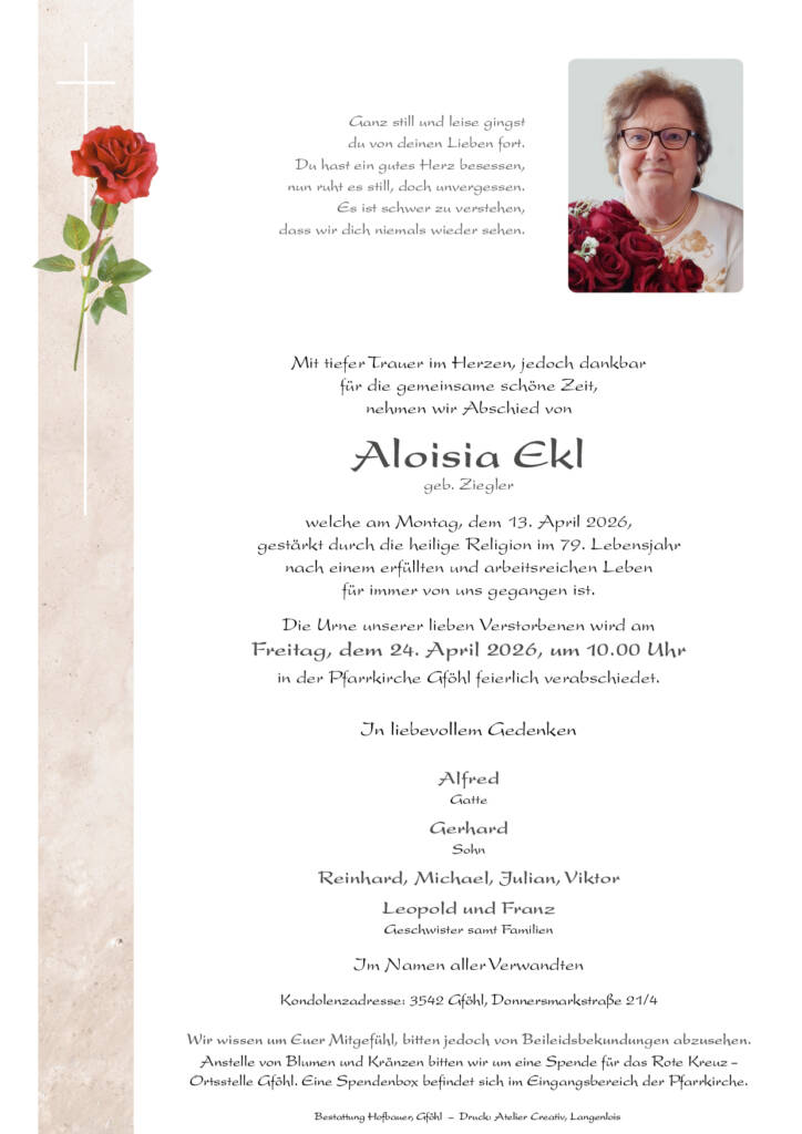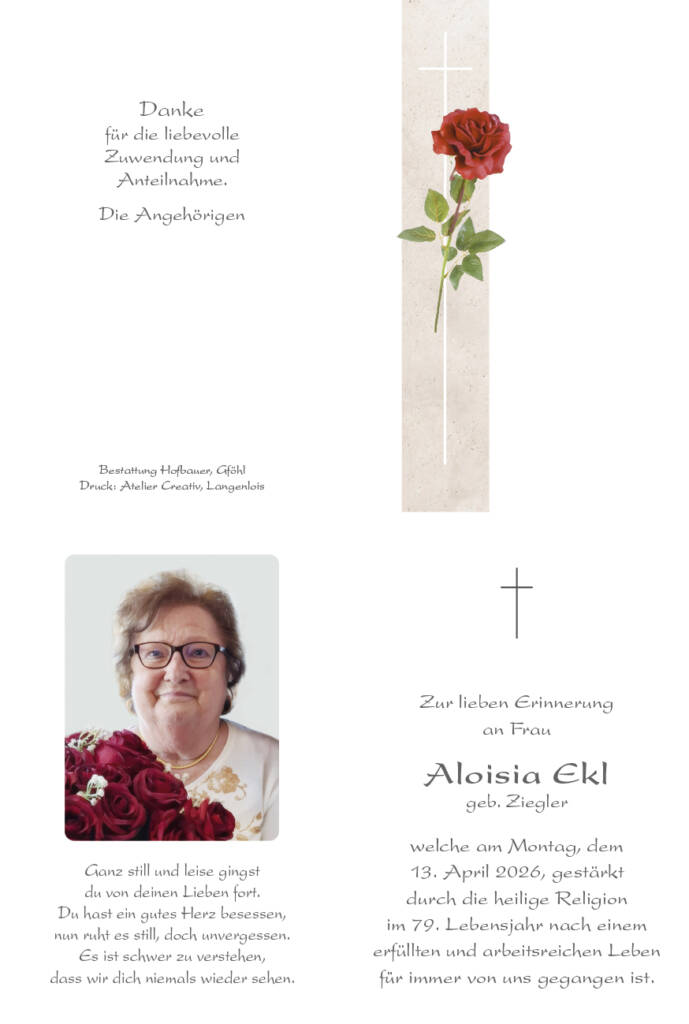 Liebe Aloisia wir werden deine immer freundlichen Worte und deine liebenswerte Art immer in Erinnerung behalten.