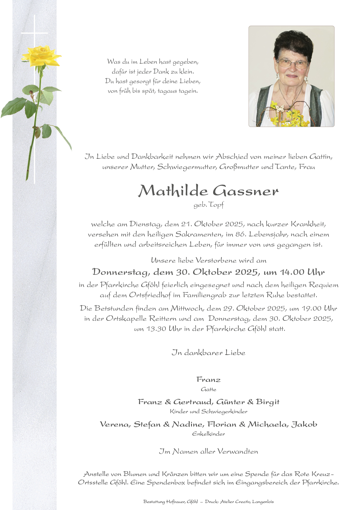 Meine aufrichtige Anteilnahme entbietet Helga Fletzer