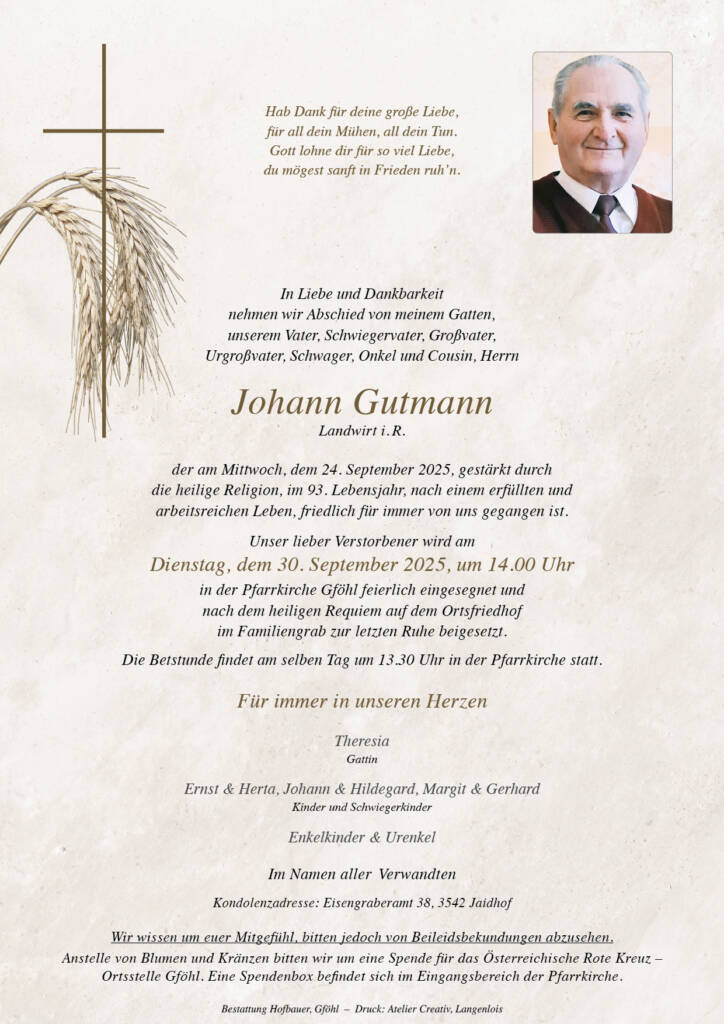 um 13.30 Uhr in der Pfarrkriche Gföhl