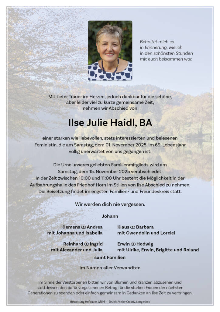 zwischen 10.00 und 11.00 Uhr in der Aufbahrungshalle Horn