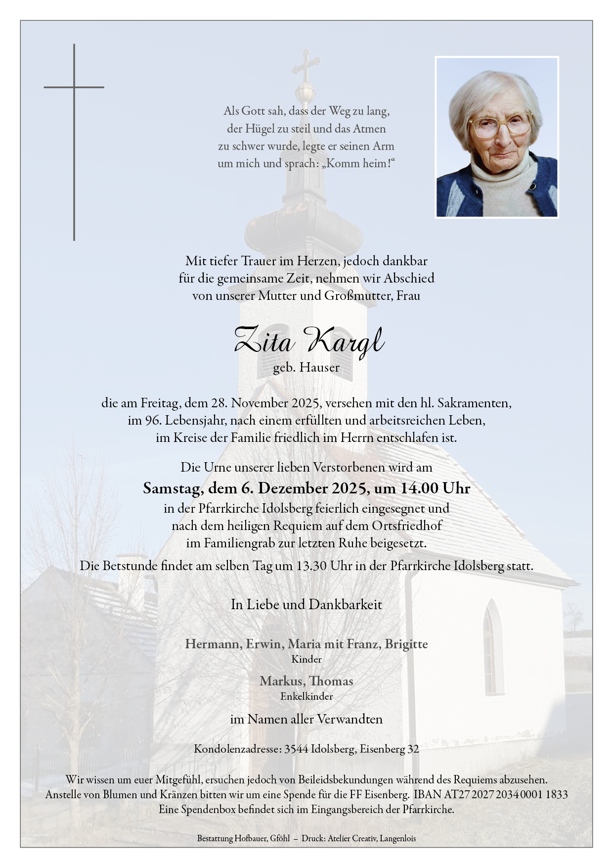 um 14.00 Uhr in der Pfarrkirche Idolsberg