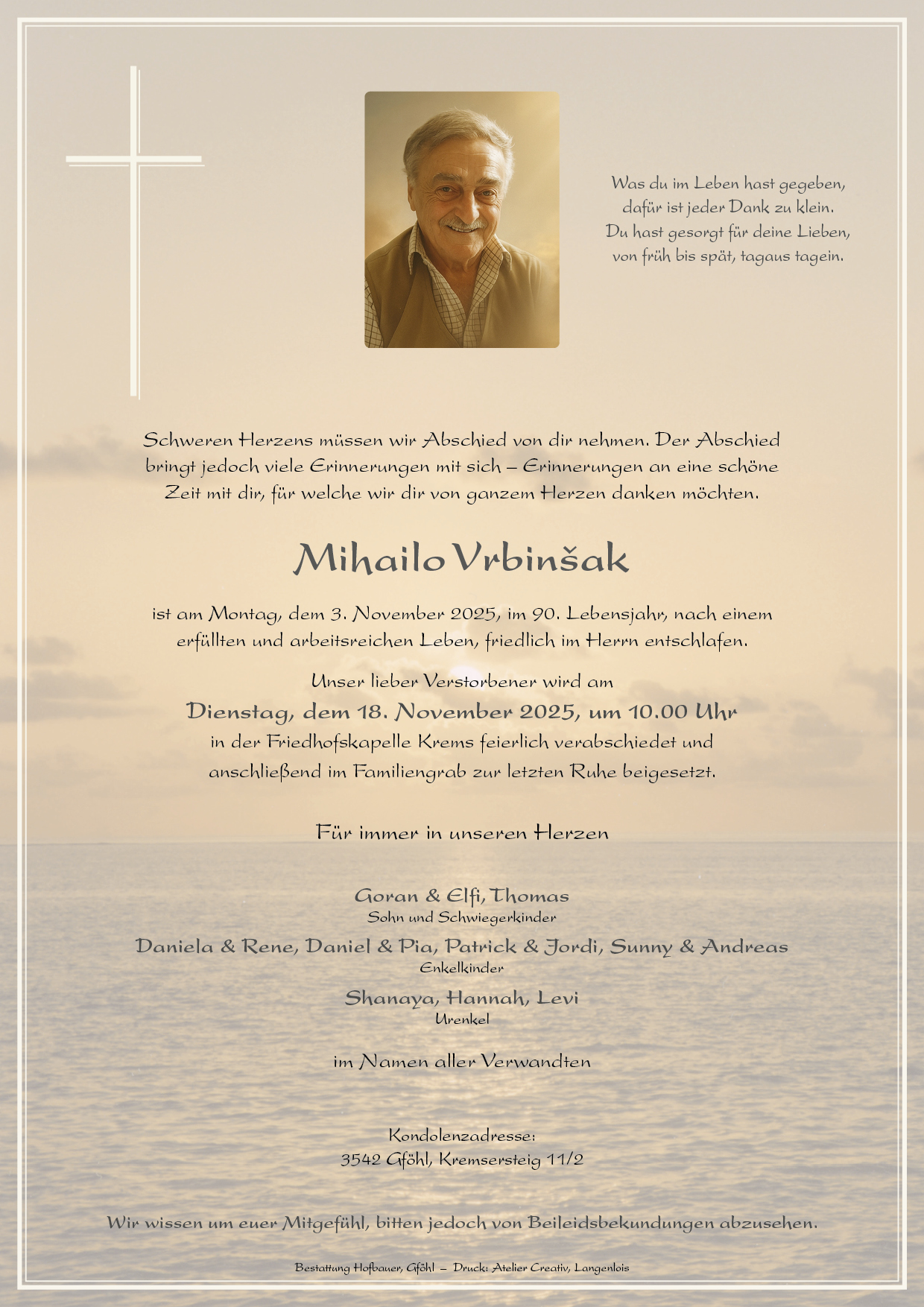 um 10.00 Uhr in der Friedhofskapelle Krems